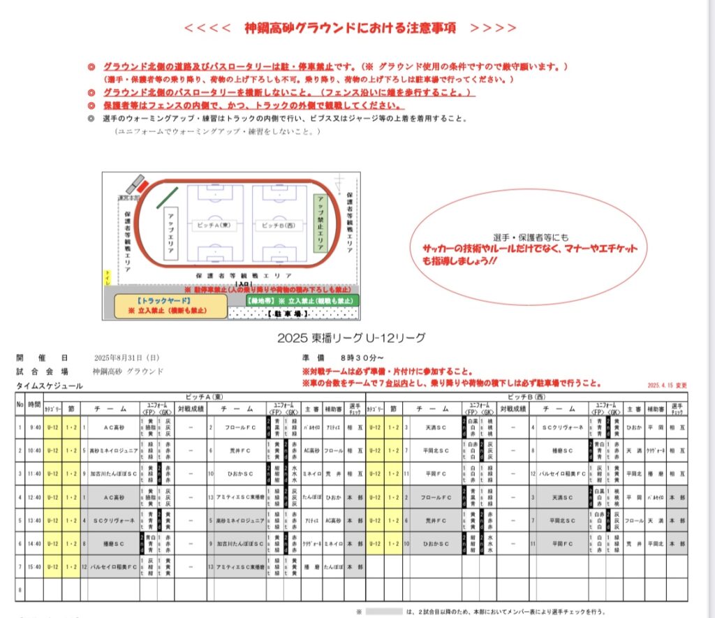 ★登録No.のユニフォームとレガース忘れの場合、試合に出られません。必ず忘れないように着用してください。