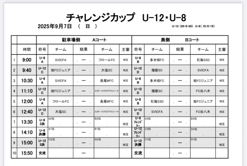 ◇試合時間はU-12 (20-5-20) U-8(15-5-15)