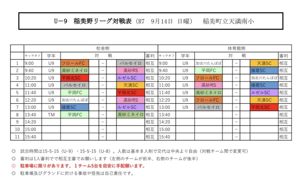 9月14日(日)U-9稲美野リーグ