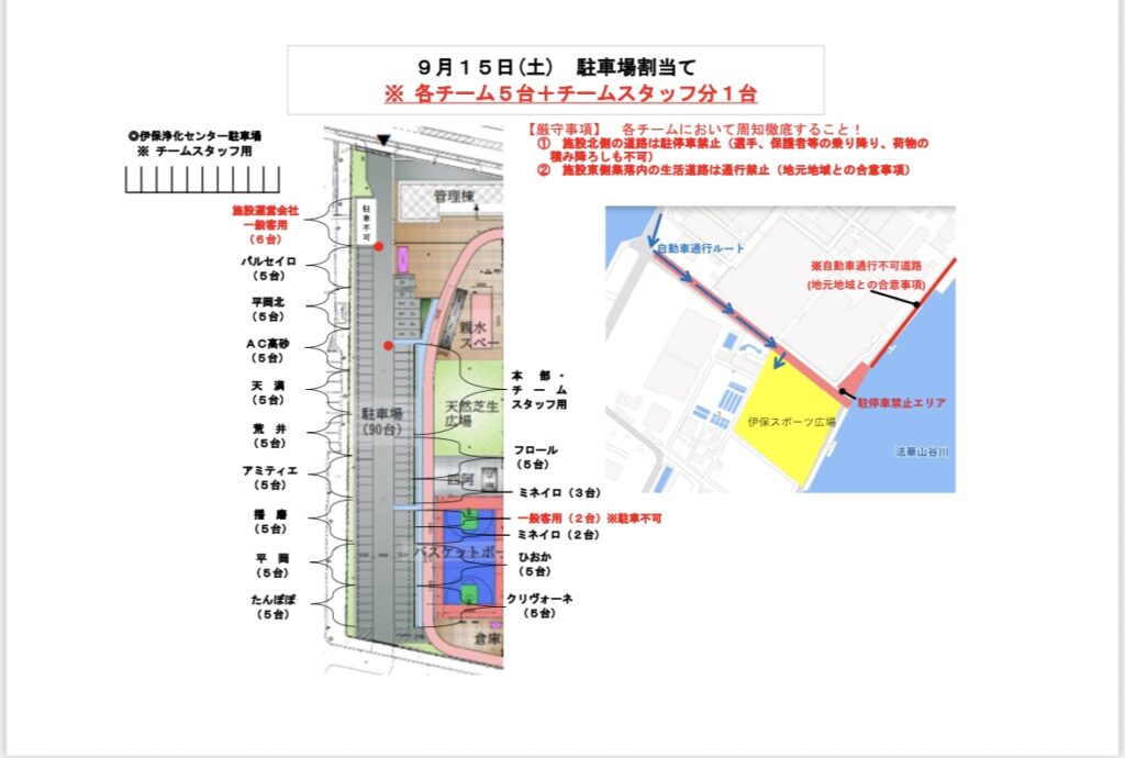 ★登録No.のユニフォームとレガース忘れの場合、試合に出られません。必ず忘れないように着用してください。
