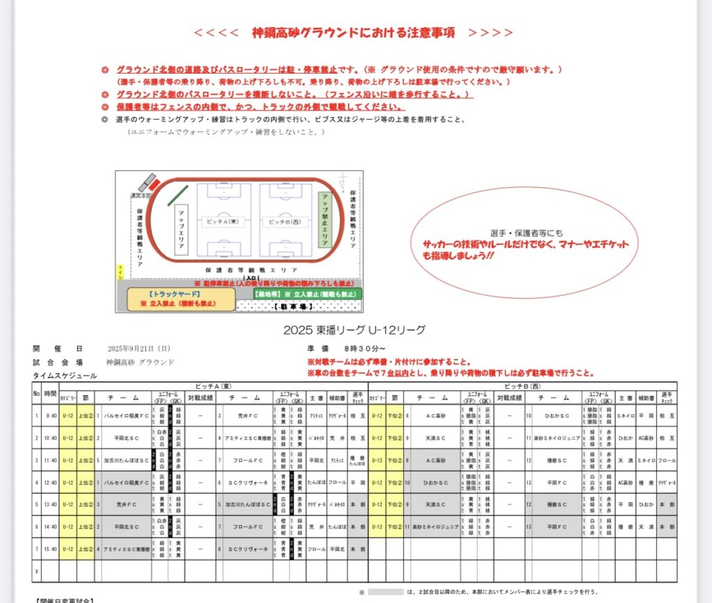 ★登録No.のユニフォームとレガース忘れの場合、試合に出られません。必ず忘れないように着用してください。